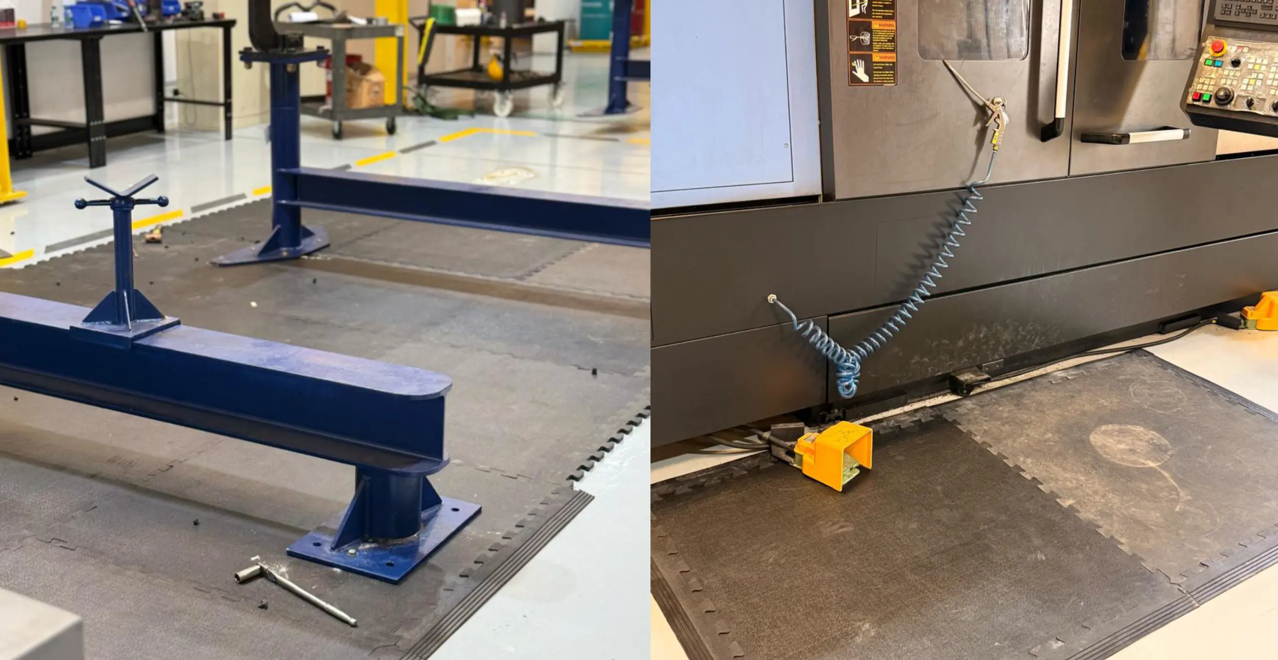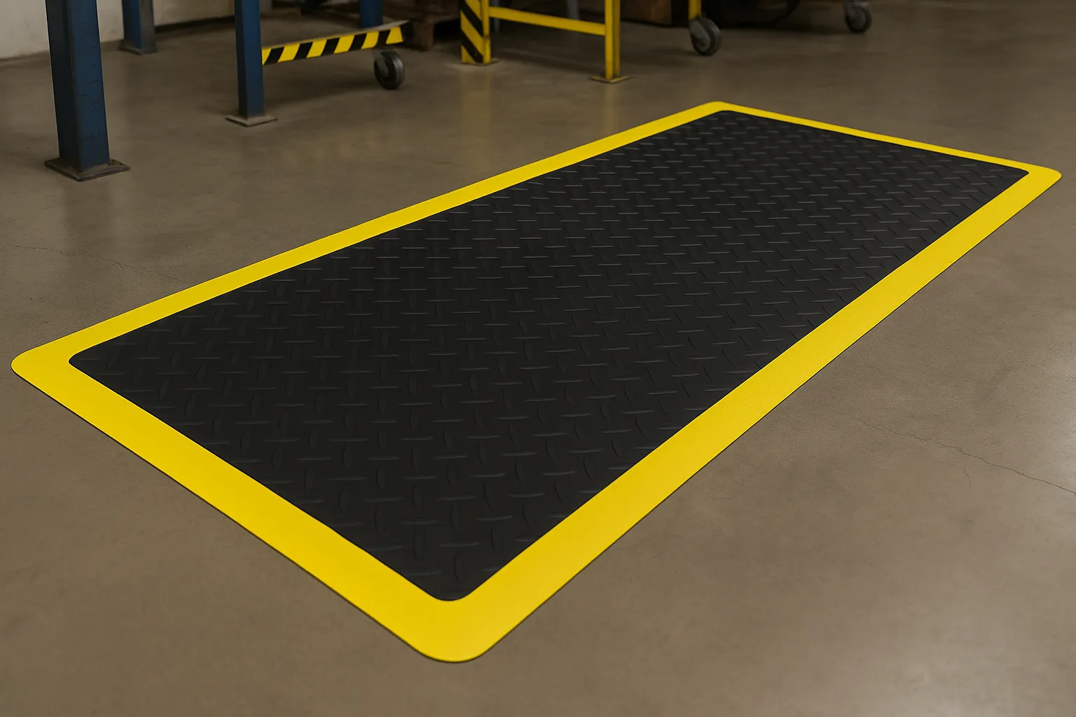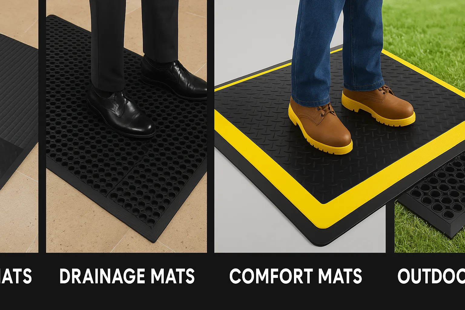 - Manufacturing & Automotive: Factory floor mats, Assembly line mats, and Diamond plate mats.