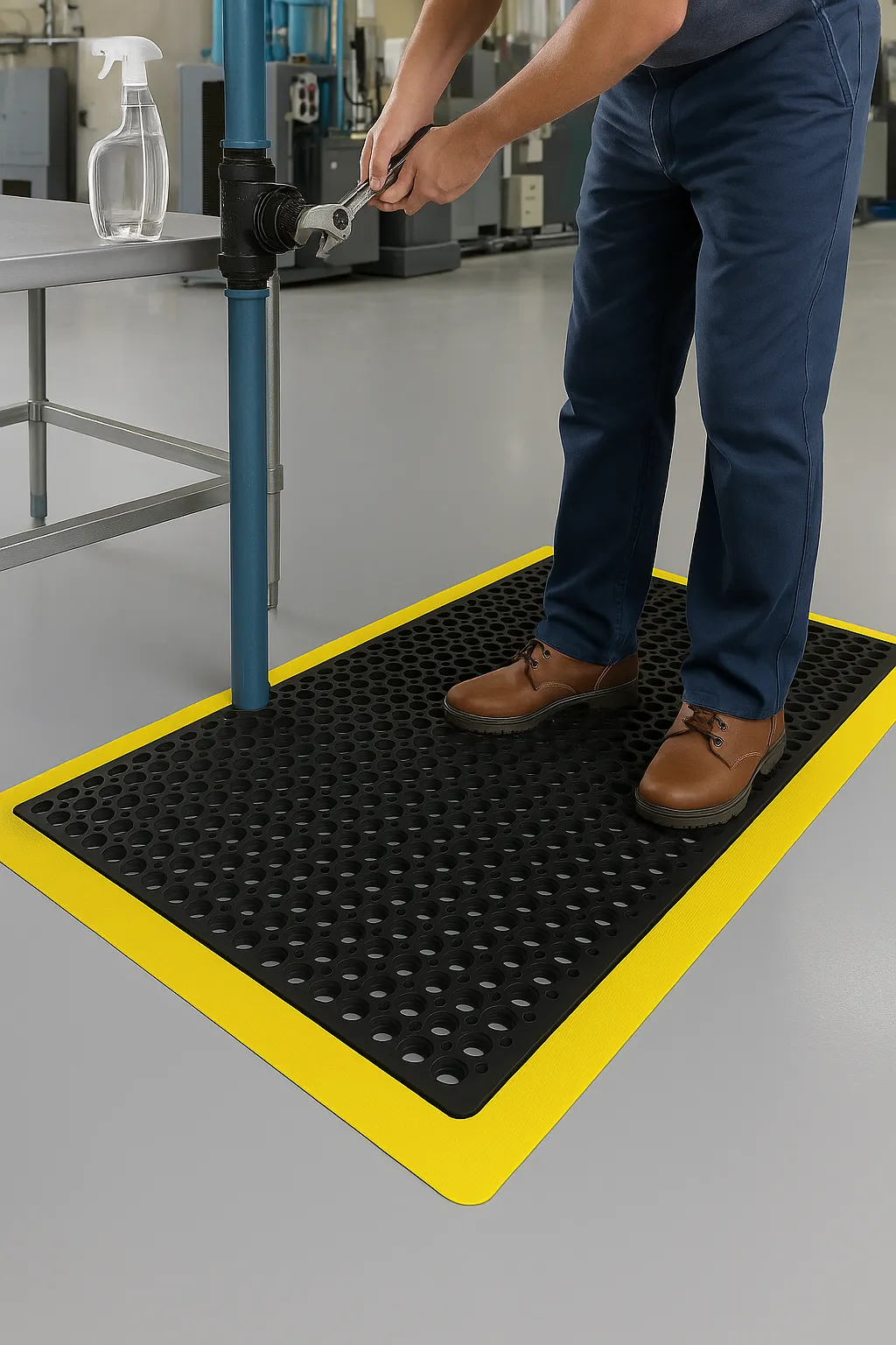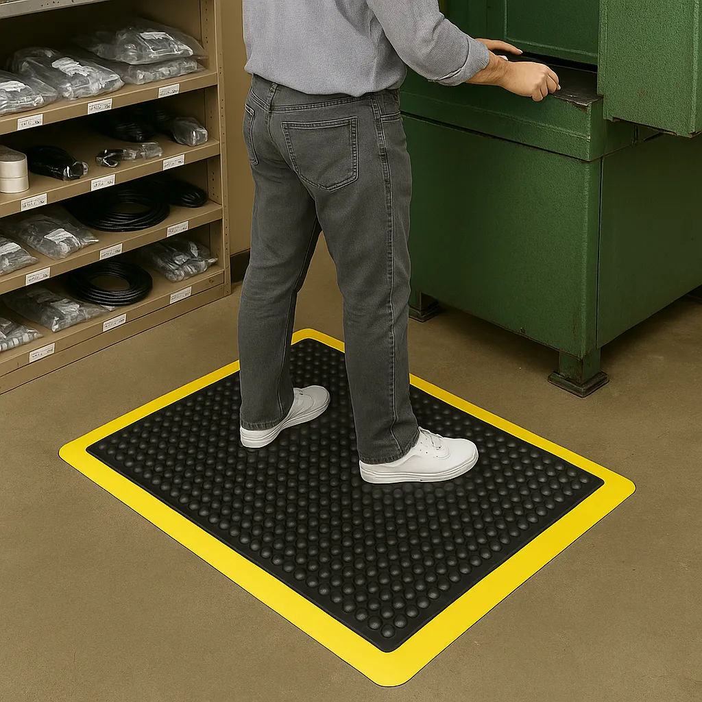 Industrial mats, also known as anti-fatigue mats, safety mats, ergonomic mats, rubber mats, drainage mats, comfort mats, and standing mats,are designed to provide long-lasting durability, comfort, and slip resistance. Whether in a factory, warehouse, kitchen, laboratory, retail counter, or oil & gas facility, our mats reduce fatigue, prevent slips, and protect workers.
