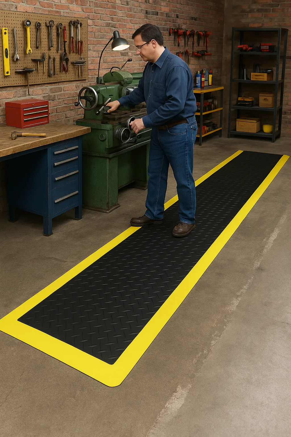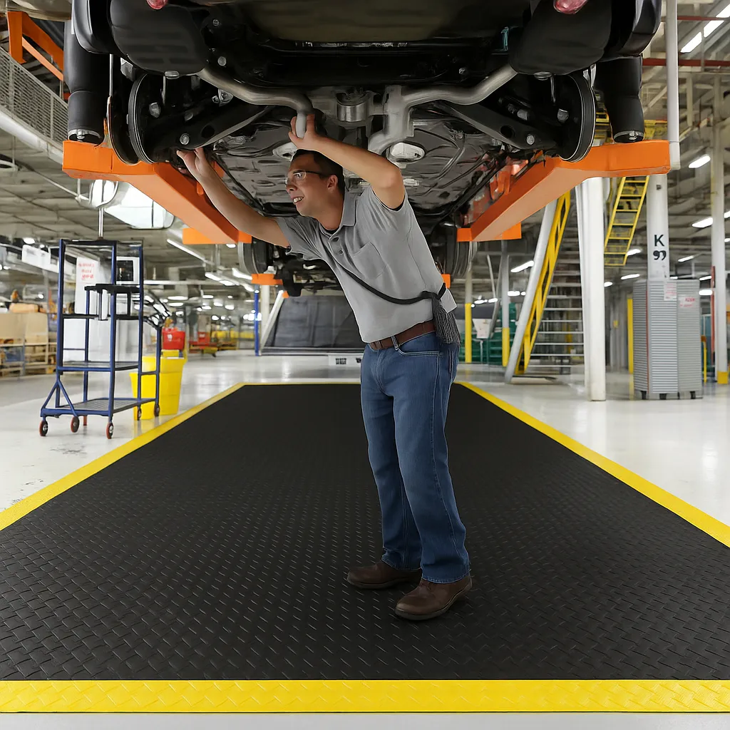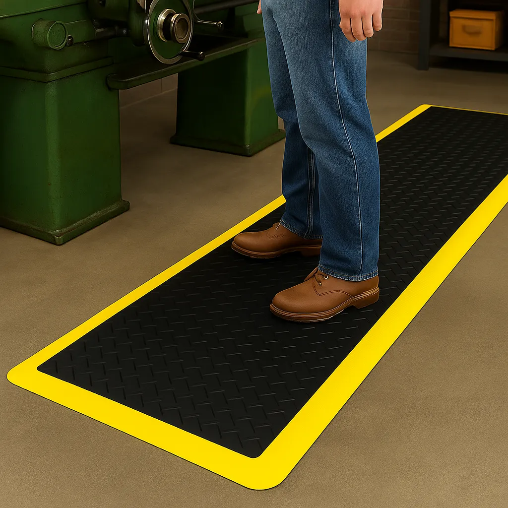 | Diamond Plate Anti-Fatigue Mat | PVC/Nitrile | 9–15 mm | Diamond Plate Pattern | Manufacturing, Automotive, Workshops |