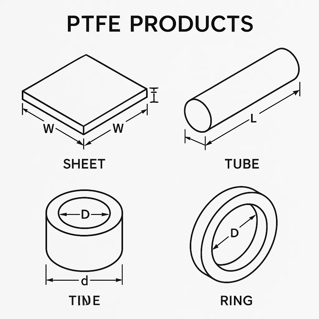 | Virgin PTFE (100%) | Pure unfilled PTFE | • Resistant to chemicals, low friction • Suitable for gaskets, insulators, and linings |