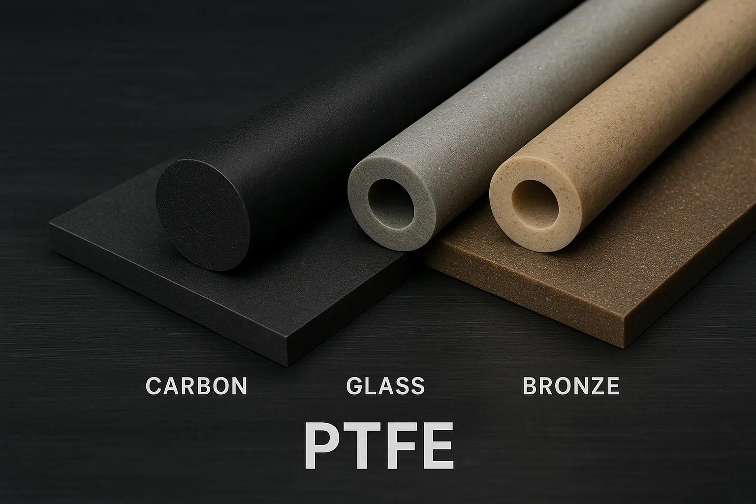 | 25% Carbon Filled PTFE | PTFE + Carbon | • Higher dimensional stability • Improved conductivity • Used in pump housings |